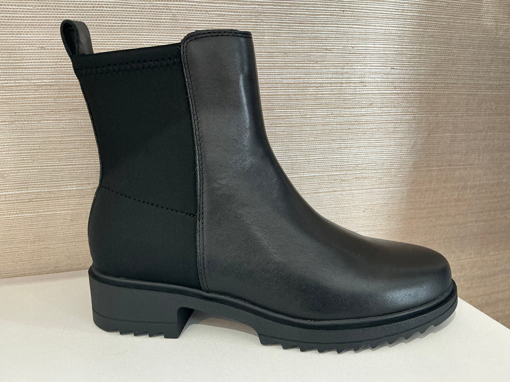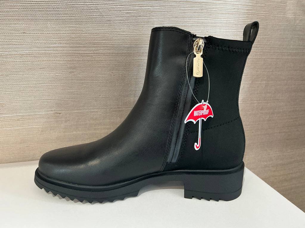 Waterproof black leather bootie style, lug rubber sole